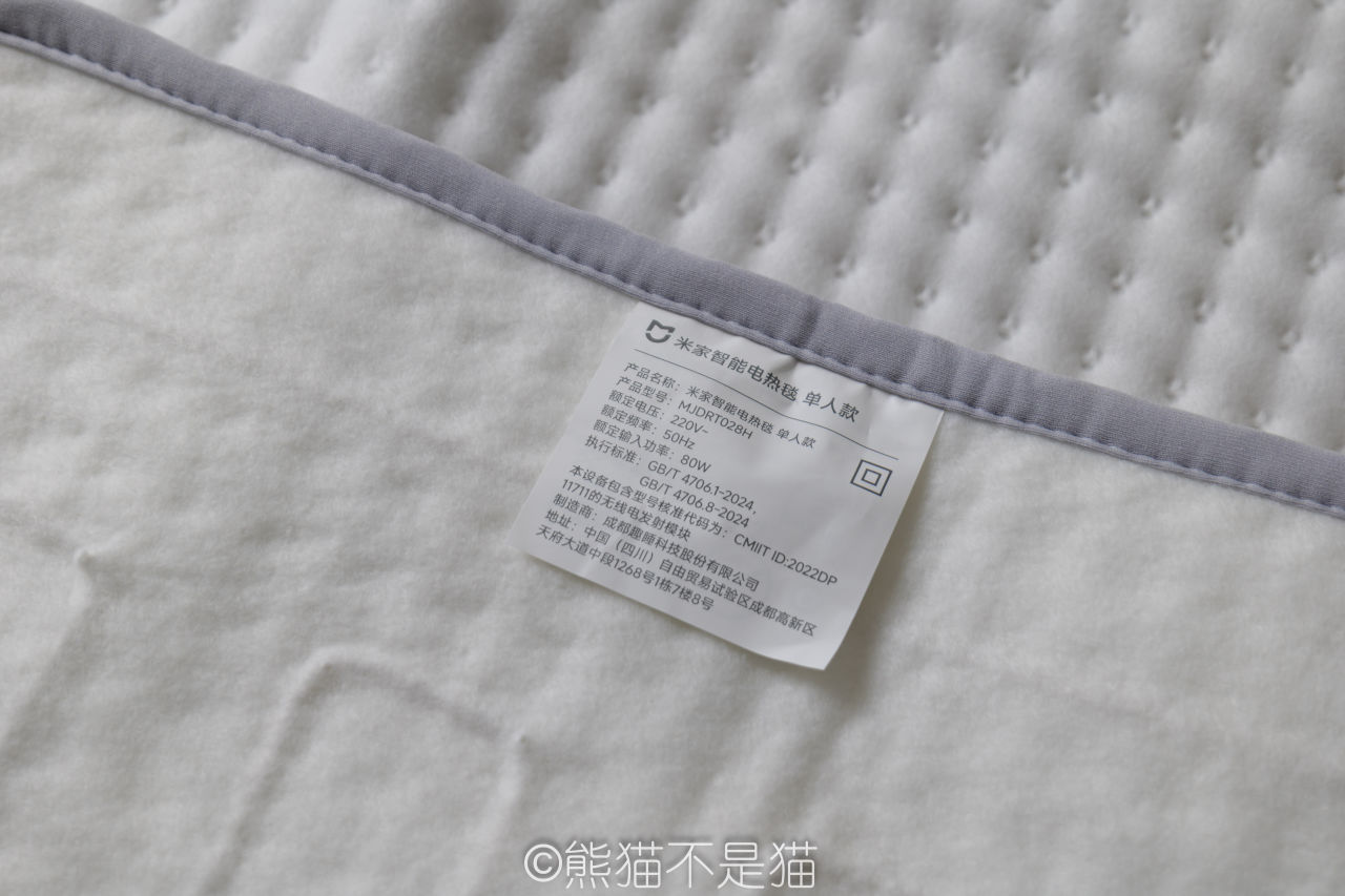 从标签处还能看到制造商以及执行标准,制造公司居然来自成都,也算和熊猫是老乡企业了。电源的功率为80W,对于一款电热毯来说完全足够了,对电热毯来说完全够用,既节能又保暖。