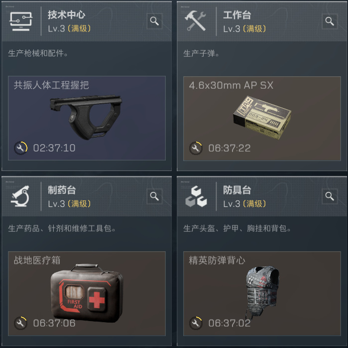 今日特勤处制作:共振握把,金血包,老塞甲,5.45金蛋/4.6x30金蛋