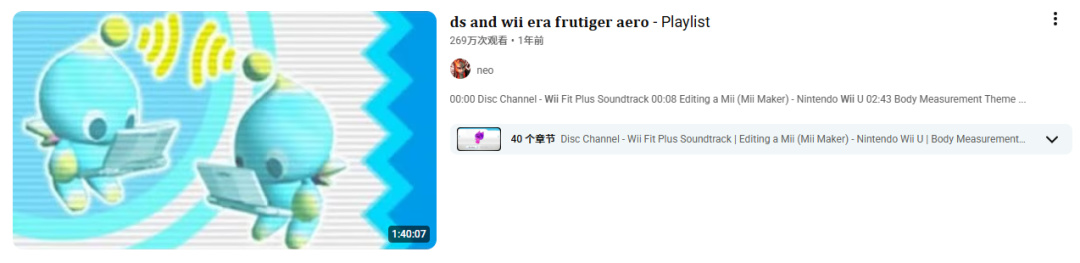 Frutiger Aero不仅限于视觉设计,音效对其美学体系的构建同样功不可没。而在各大平台的歌单里,任天堂 Wii、DS时代的菜单以及游戏音乐成为了Frutiger Aero音乐的重要组成部分。