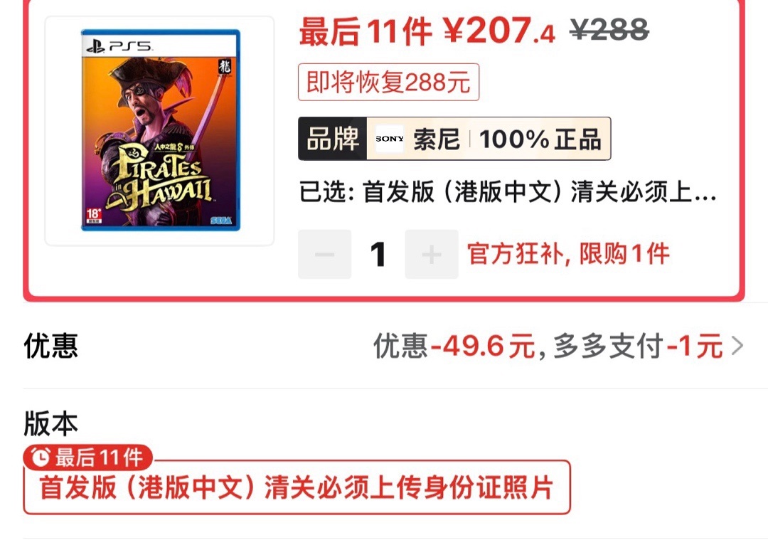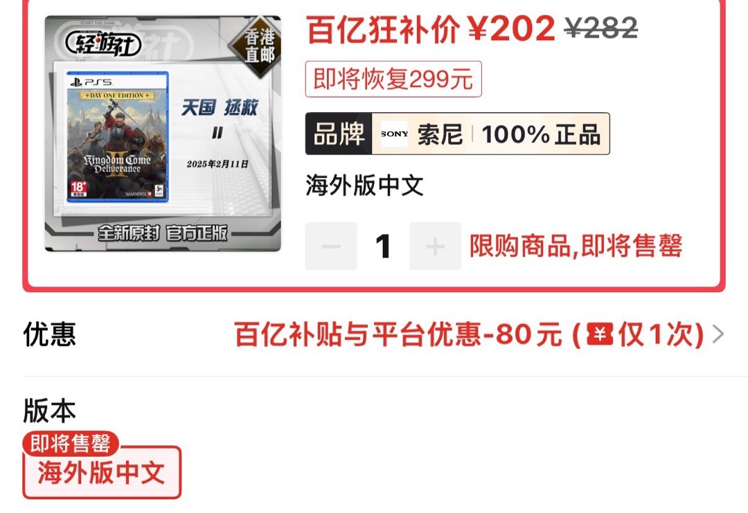 天国拯救2海外版新史低202(需要30券)