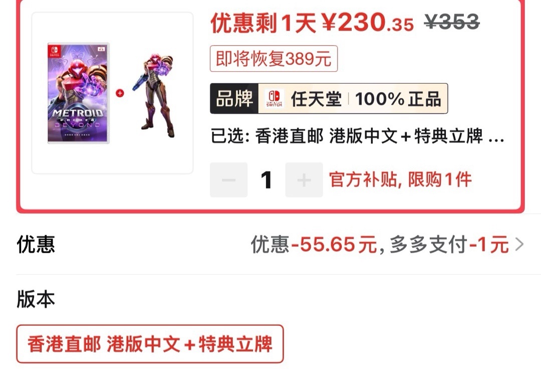密特罗德究极港版新史低230(仅85券)
