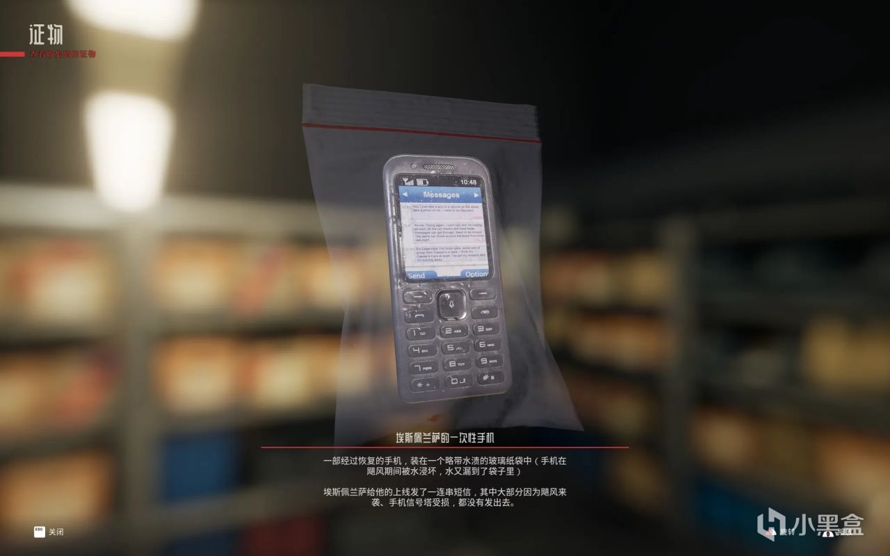 一部經過恢復的手機,裝在一個略帶水漬的玻璃紙袋中(手機在颶風期間被水浸壞,水又漏到了袋子裏) 埃斯佩蘭薩給他的上線發了一連串短信,其中大部分因爲颶風來襲、手機信號塔受損,都沒有發出去。