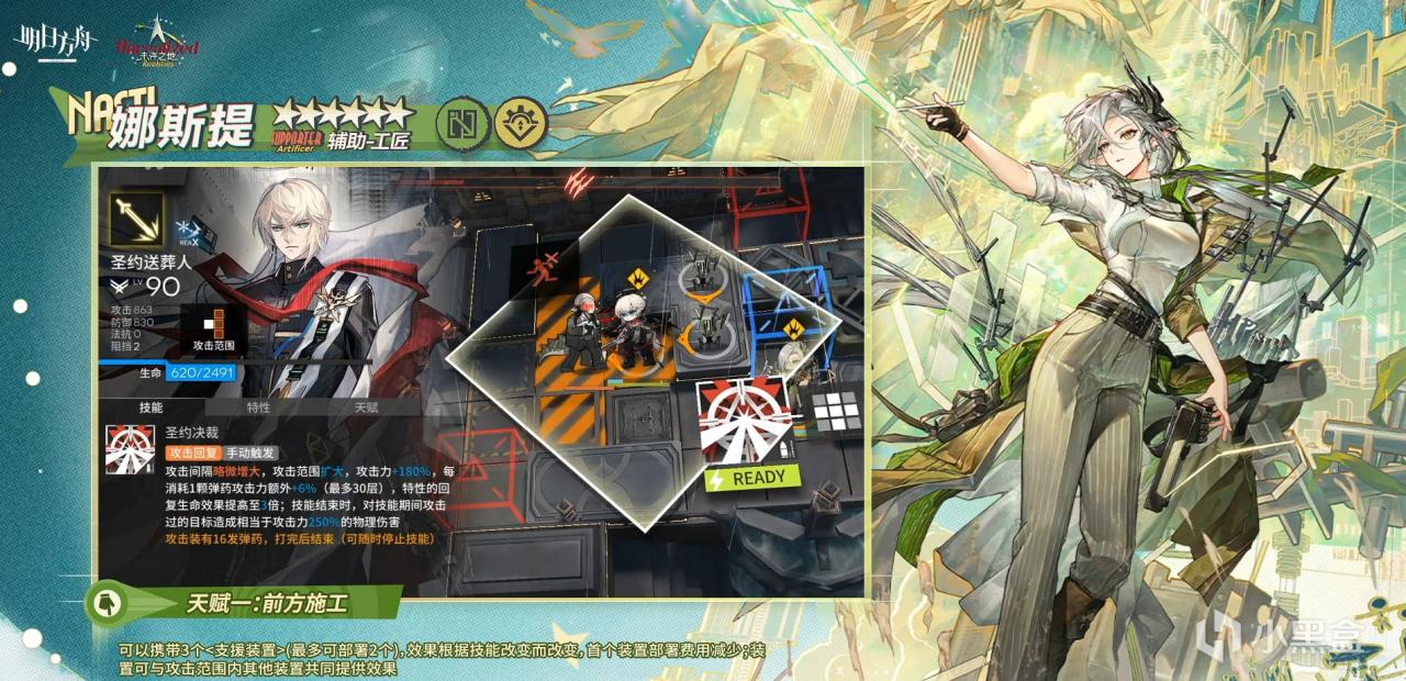 天赋首个装置费用减少,并且本次娜斯提X模,效果<支援装置>的持有上限+1且部署费用减少。对于辅助装置启动费用需求低。