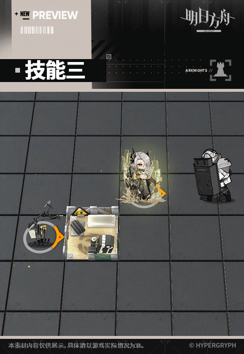 天赋是装置首个费用-2。可以与旁边装置共同加成一个干员。也就是第二个装置朝向第一个装置来加成同一个干员。