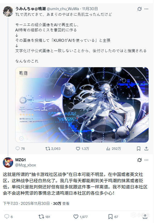 事件迅速传至日本社区,玩家纷纷表示“太恶劣了”“为了黑而造假太离谱”。有海外玩家透露,这种“用AI伪造官方图+栽赃”的手法在英语圈与中国竞争对手的“社区战争”中已屡见不鲜,但如此明目张胆地伪造证据仍属罕见。
