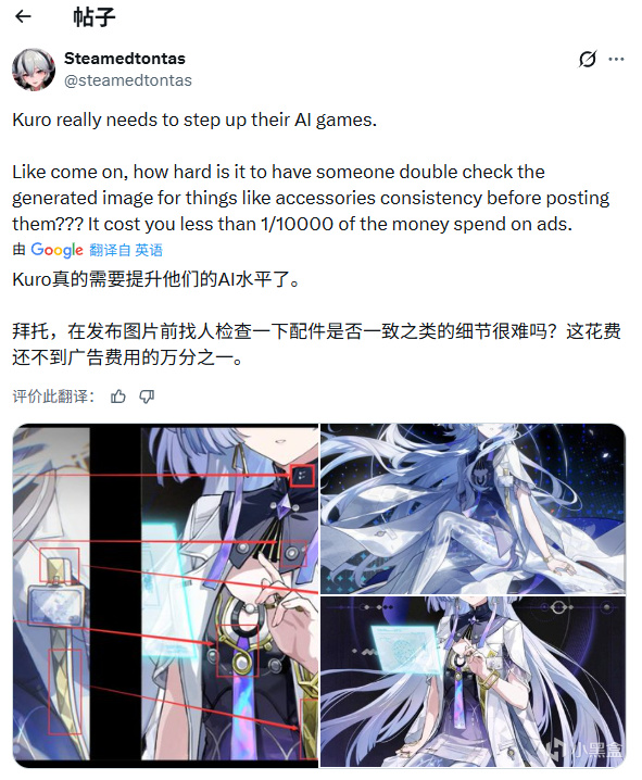 此外,该用户还拿两张不同角度的官方图对比饰品细节,声称“不一致即AI证据”,同样被社区笔记反驳:官方已注明“展示用图,细节可能与实机不同”。