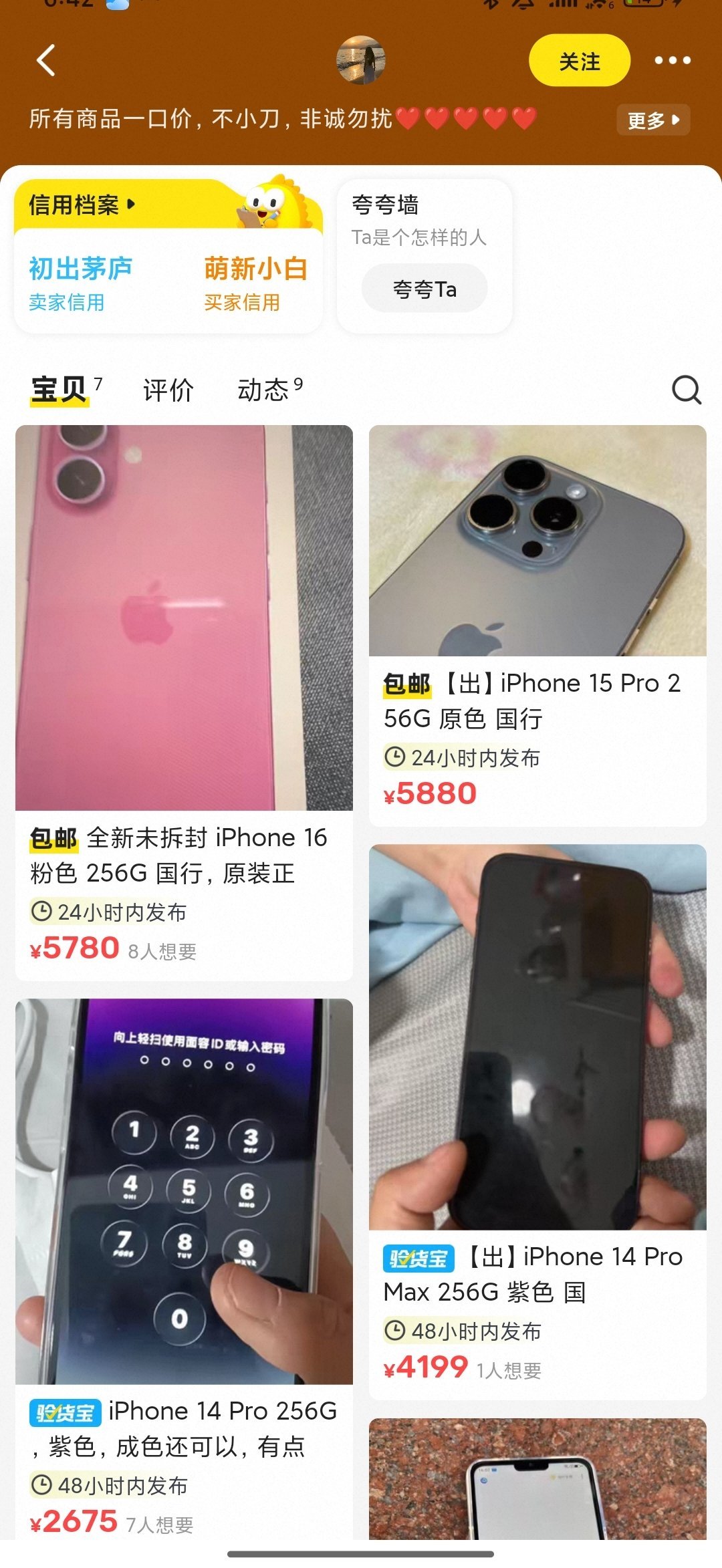 还包装自己的简介。这种伪装号比明显的商家号更坑,拿捏大家信个人防商家的心理。主页混挂衣服、小家电等非数码闲置,简介写“个人自用”“学生党清货”,甚至挂生活照立人设。