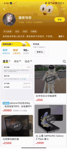他们把自己的账号伪装成个人账号,也发布了几个日常二手物品的买卖,还刷了买卖的评价(一眼假:找同一个人刷评论,高仿:找多个人刷)