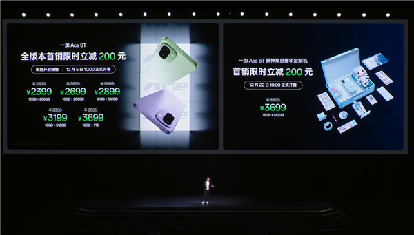 快科技12月3日消息,今日,一加Ace 6T原神神里绫华定制机正式发布,首发到手价3699元,将于12月22日开售。