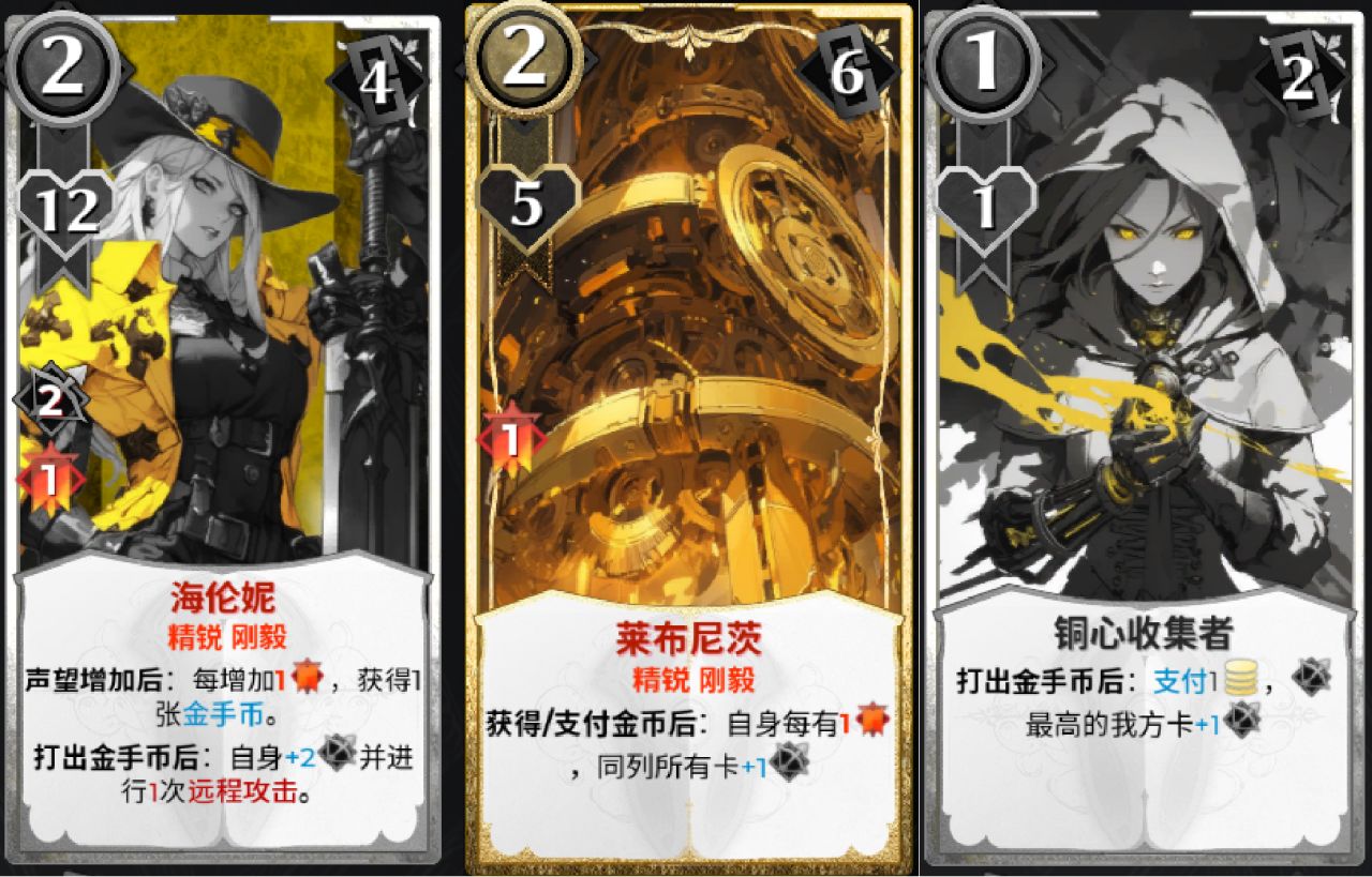 再搭配上莱布尼茨(获得/支付金币,+1远程攻击力)和铜心收集者(撒币付钱,+1远程攻击力),在撒币的过程中叠出一个数值怪。V海伦妮50个金手币,她自会击杀所有来犯之敌。靠着董事长严选新手轮椅阵容,我完成首次通关。
