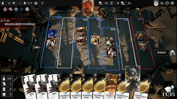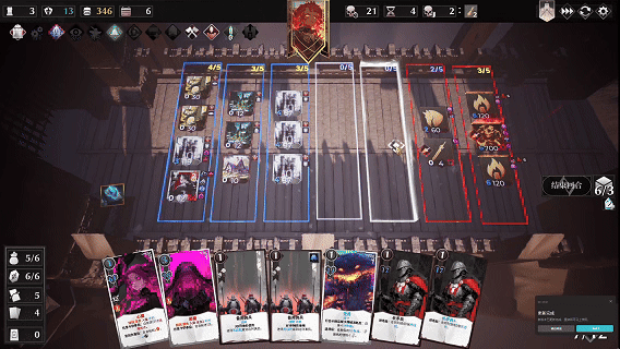 需要注意的是, 同一列中,最下方的单位最先受到攻击。因此,要把远程输出放后排并且先放置。一旦精锐牌死亡,返回到手牌中。