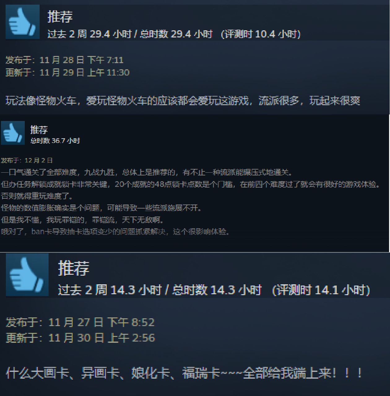 在一口气玩了10多个小时之后,我的游玩感受和这位盒友相同,好玩上头、量大管饱。游戏目前最大的问题不在于卡面的AI美术,而在于区分度不够。