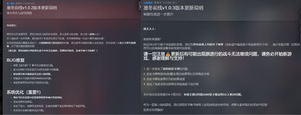 在游戏发售至今的一周时间里,官方仍在持续爆肝中,先后上线了两次版本更新,调整新手教程、优化性能表现、新增全新词条和优化部分卡牌平衡性。
