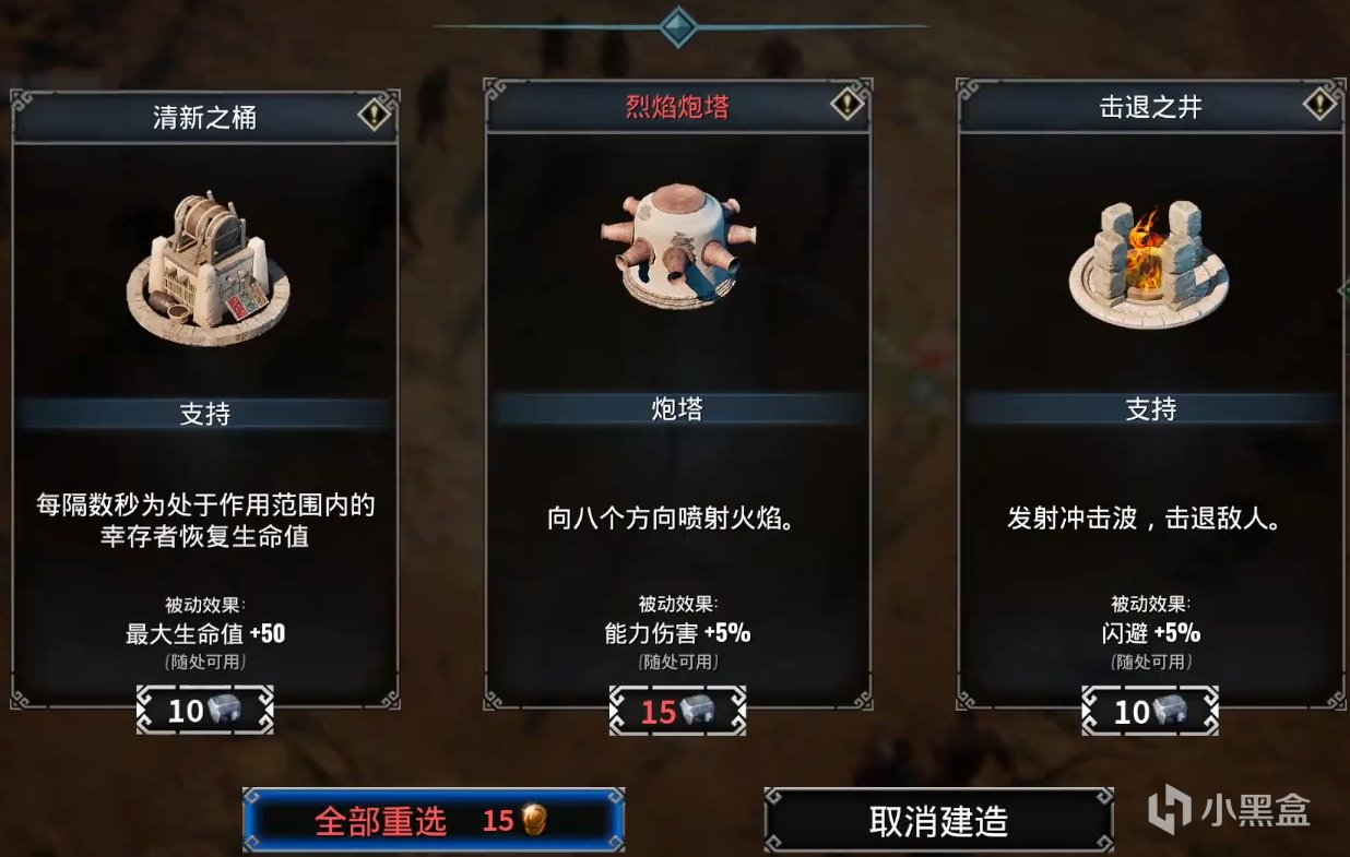 因为建造塔防都需要用到不同数量的矿产资源(各种塔防建议中后期在建造,塔也都是有生命,会被破坏)。塔防类型也是多种多样:有战斗攻击类、防御治疗型类、辅助加成类等不同效果的建筑。(建造的时候挑中间一点的建筑点位建造,合理利用空间)当然不满意也可以花金币进行刷新。
