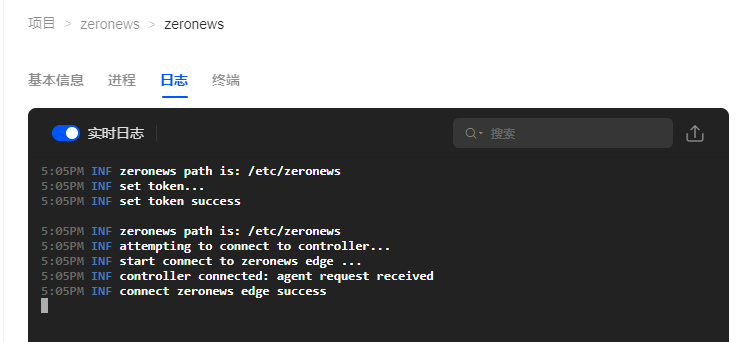 因为NAS是作为 Agent 接入,所以不存在什么端口,确认无误执行之后可以在日志中看到这样的内容,这也就代表服务已经部署成功了。