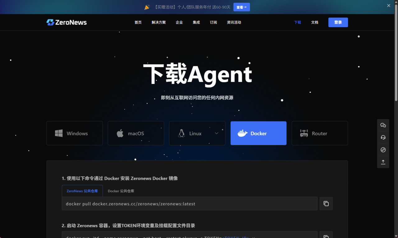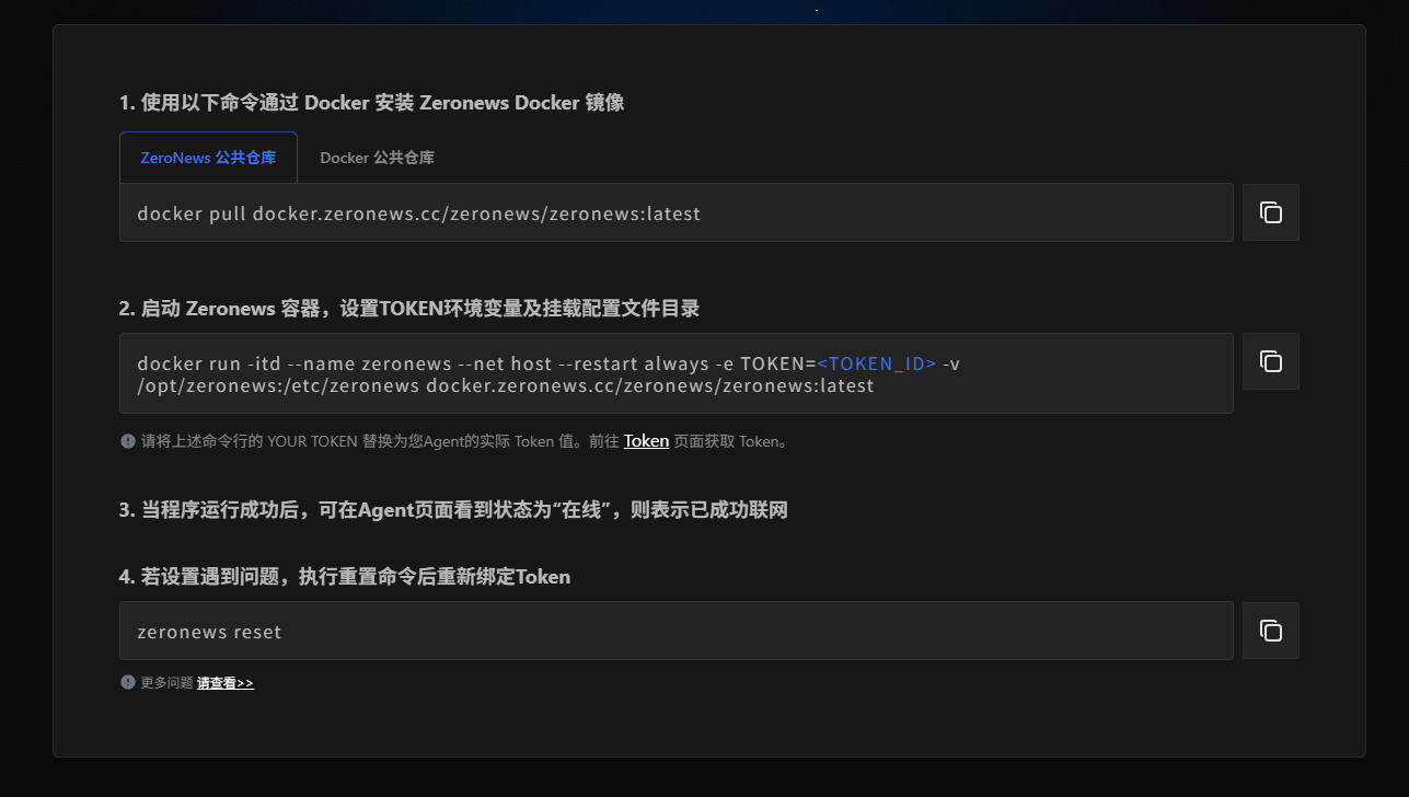 部署方面,官方不仅提供了 Docker 镜像,还很贴心地提供了自家的公共仓库,这对一些不太懂 Docker 加速器配置的用户来说,就非常友好。镜像名是 zeronews/zeronews:latest ,要是想用官方的加速地址,记得在前面加上 docker.zeronews.cc ,官网也有相关介绍。