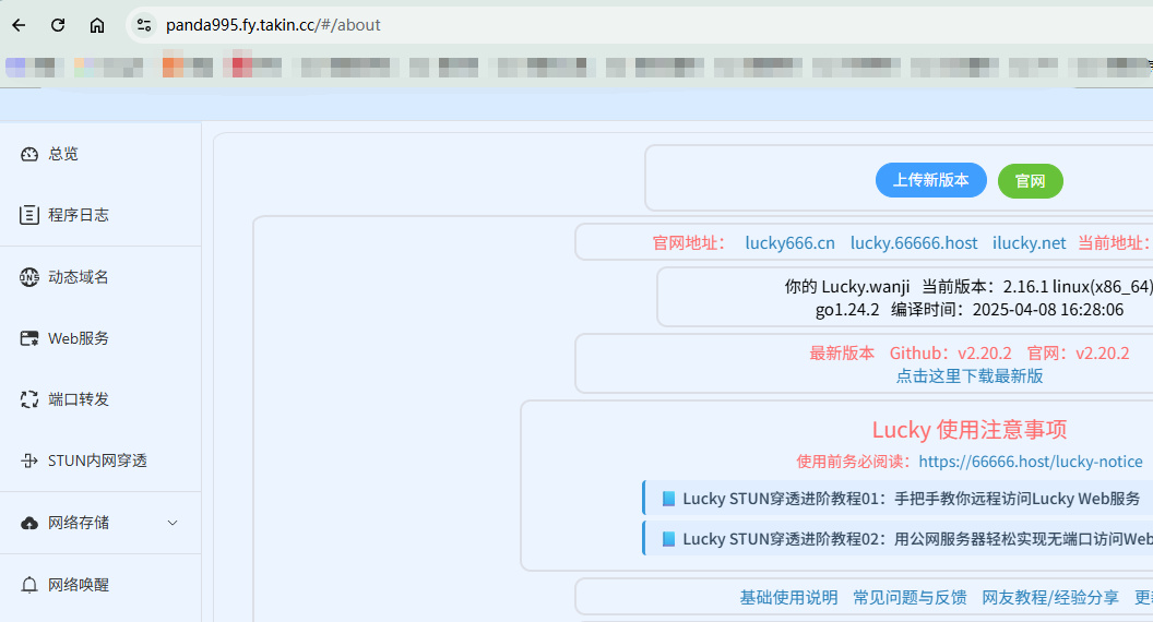 通过生成的域名,我们成功访问到了内网的lucky服务,同理,通过这个方法我们能将内部的一些服务都映射出来,从而实现公网下直接进行域名访问。