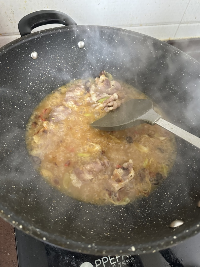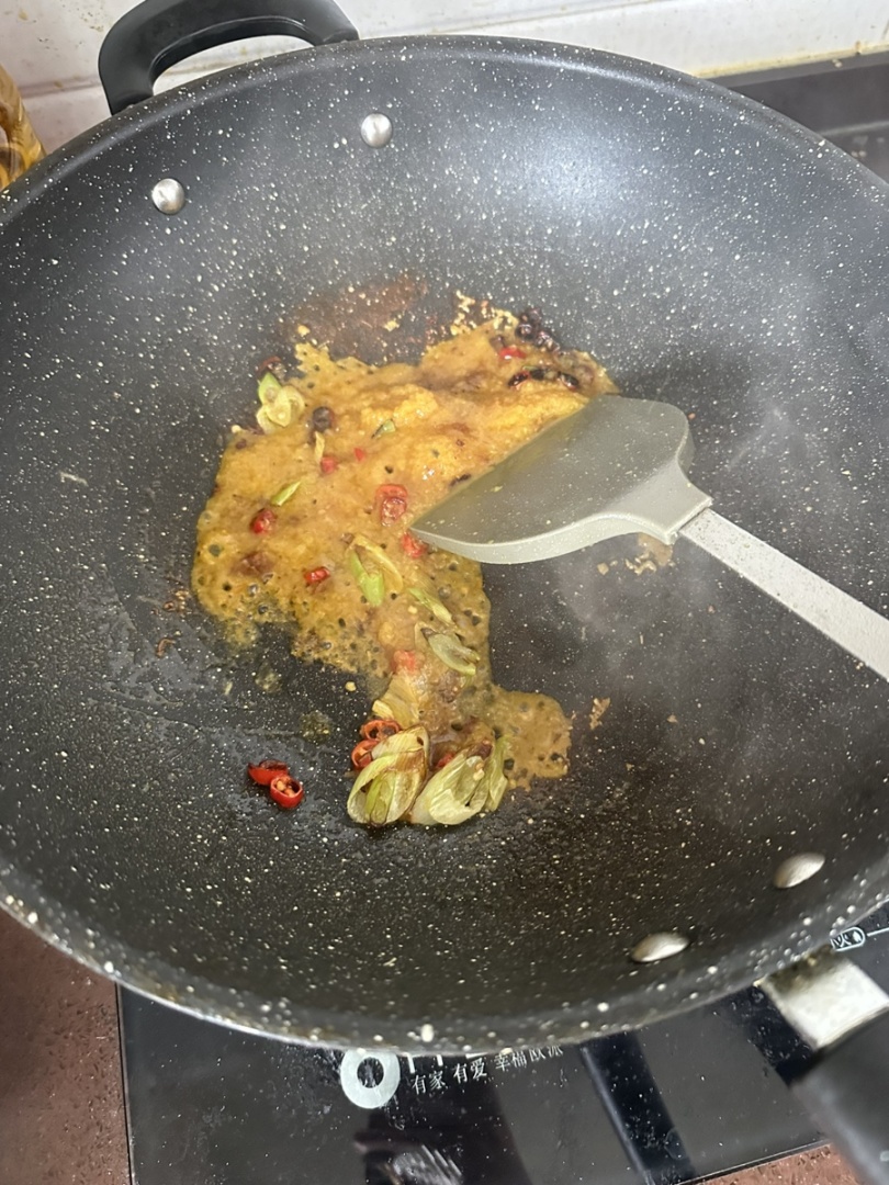 4.加入黄椒酱翻炒没有酱的直接买酸汤肥牛的料吧一样的