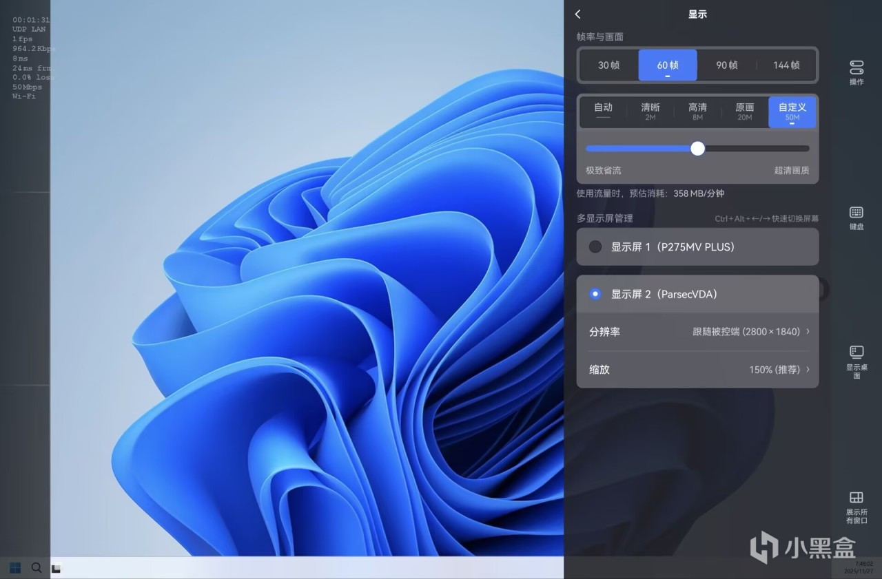 帧率与画面推荐60帧+自定义50m以上,能拉多高就看你的网络和平板性能,我60帧+50m延迟也还是十几ms,用起来和moonlight差不多。