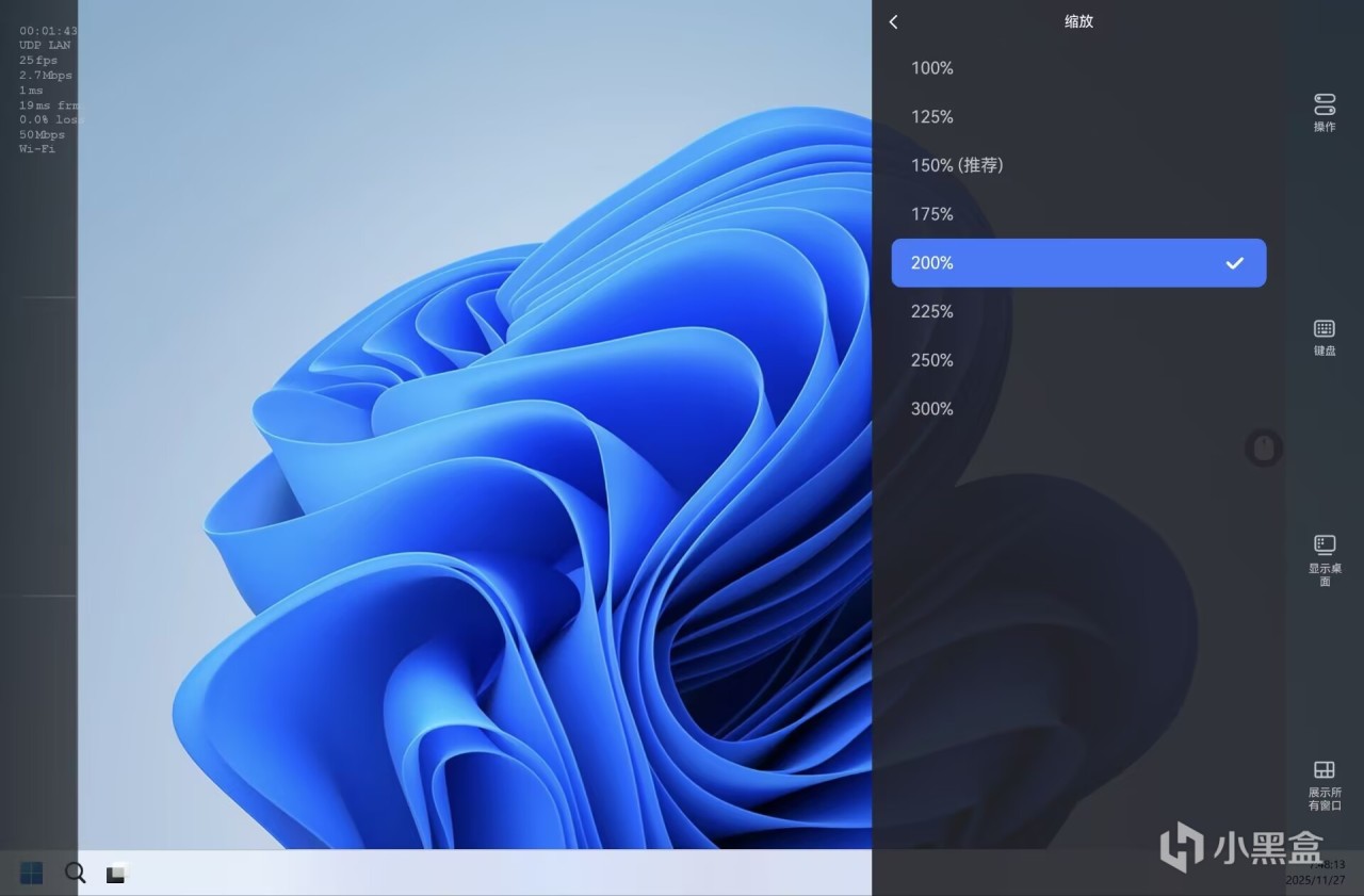 打开uu远程后点击右上角操作,下滑到显示中的多显示屏管理,能找到你的屏幕和一个虚拟显示屏,选择那个虚拟显示屏就可以看到平板进入了一个全新的桌面,这里缩放推荐百分之200,因为现在的平板分辨率都是2k以上,但是尺寸又小,缩放小了根本看不清字。