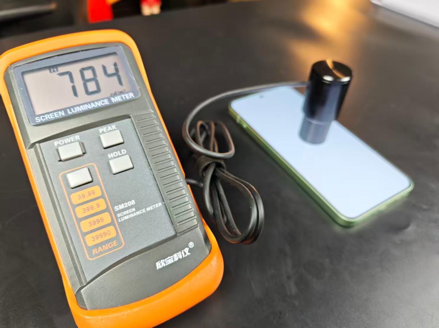 亮度方面,经实测,在室内常规光照环境下,不通过高亮度光源触发激发亮度,一加 Ace 6T的手动峰值亮度为784nit。