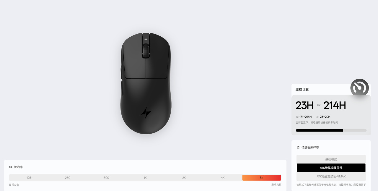 传感器没变还是PAW3950Ultra,重量对比之前的大师版减少了6克,电池也从800缩到300。属于基本够用的水平,虽然续航还在接受范围内,但是肯定没之前不充电一直用那么爽了。