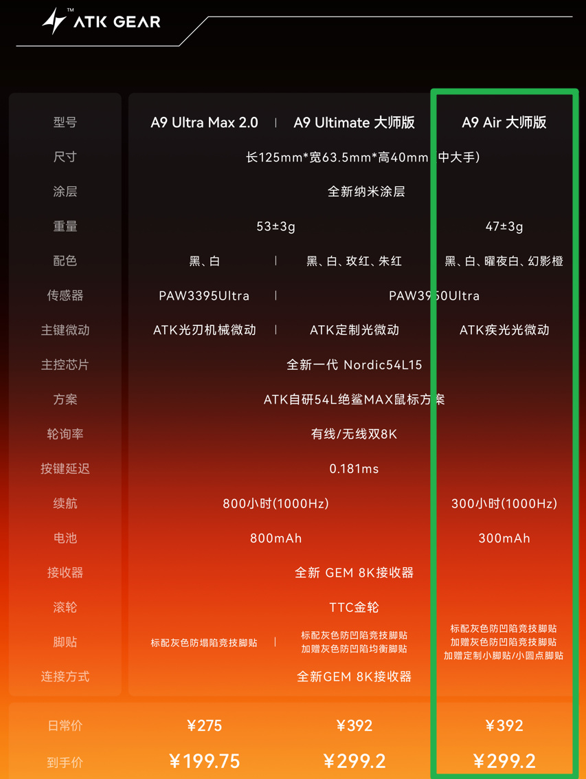 价格方面没啥好说的。A9 Air大师版跟之前的大师版,到手价都是299元,没啥区别。