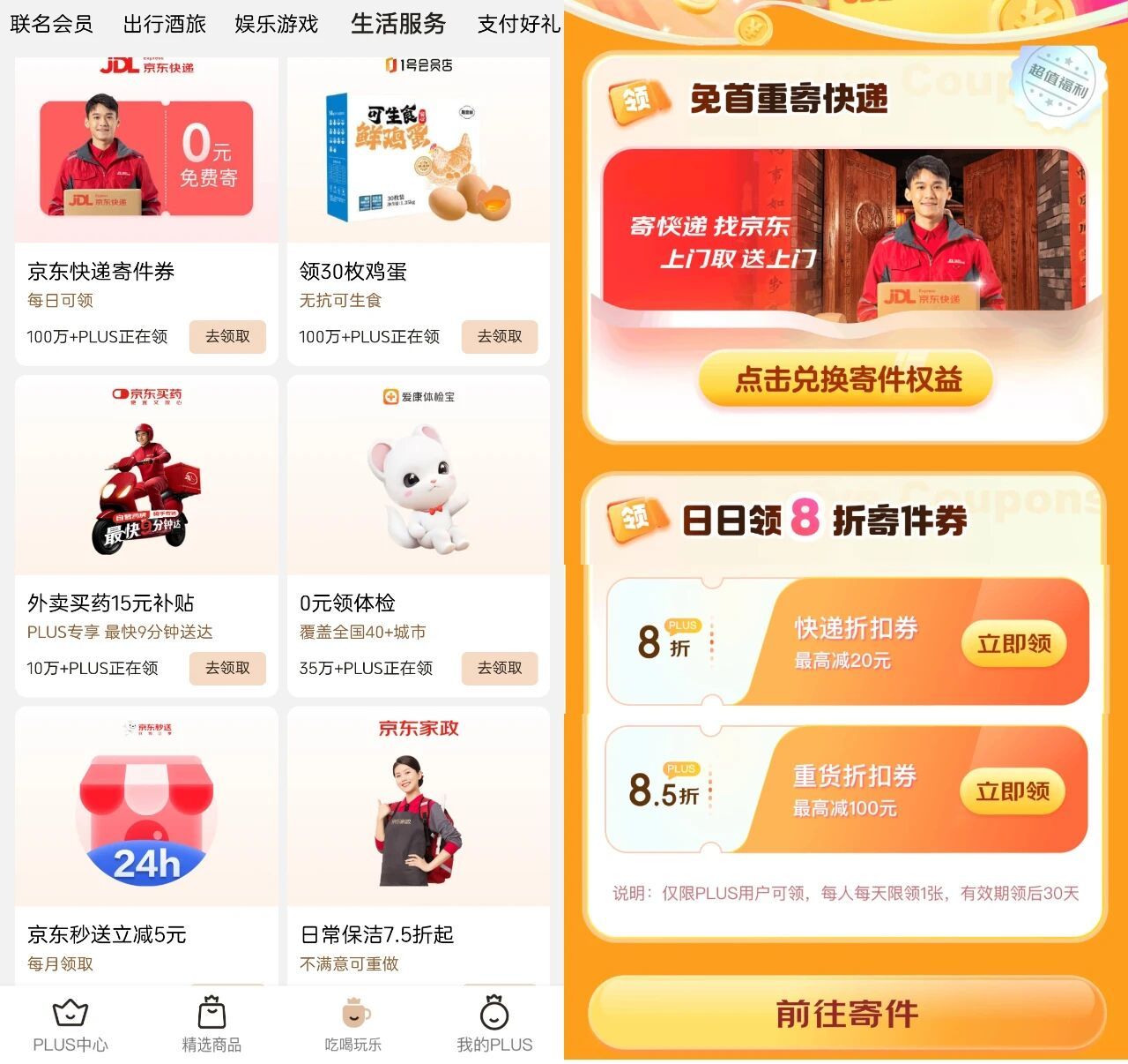 路径:京东APP→我的→PLUS会员→吃喝玩乐