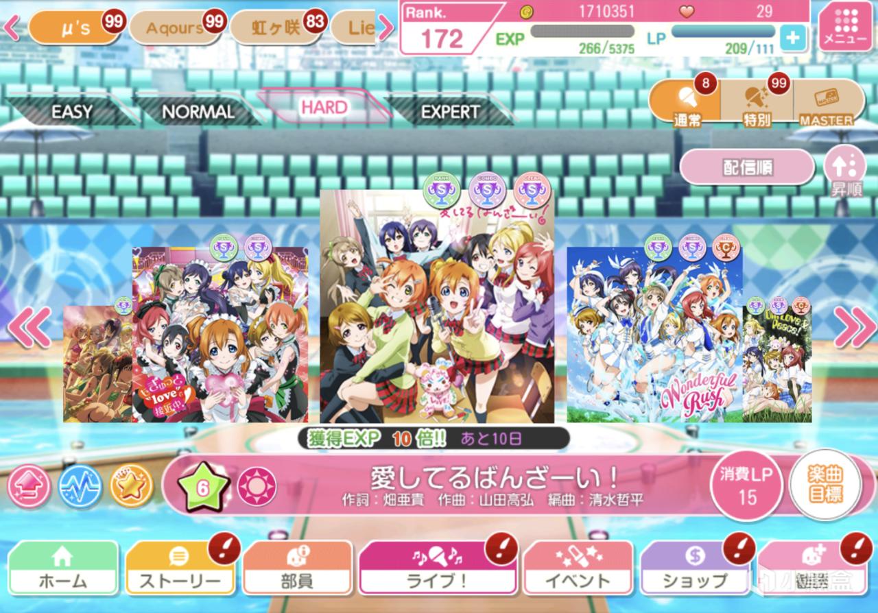 其实一开始玩LL的时候,还是挺劝退的,毕竟我直到现在都是那种打不过就氪金的思维方式,完全不会去练习自己的技术直到打到一首歌《愛してるばんざーい!》,这是一首很简单又很抒情的歌,我打了一遍就过了。想着我还能继续玩下去,就算别的歌打不过,这首歌也可以打个3S吧,就继续玩下去了——