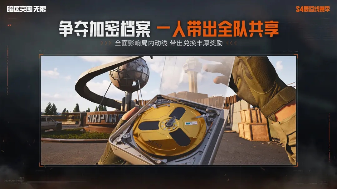 a、 当本局出现情报黑市,先锋将可在地图所提示的容器中搜索到单局唯一的加密档案,拾取后将开启加密档案任务,而队友也将开始护送任务。完成任务将加密档案顺利带出或完成护送任务,即可获取档案奖励,并在商城的情报黑市中抽取金币或文森晶钻。