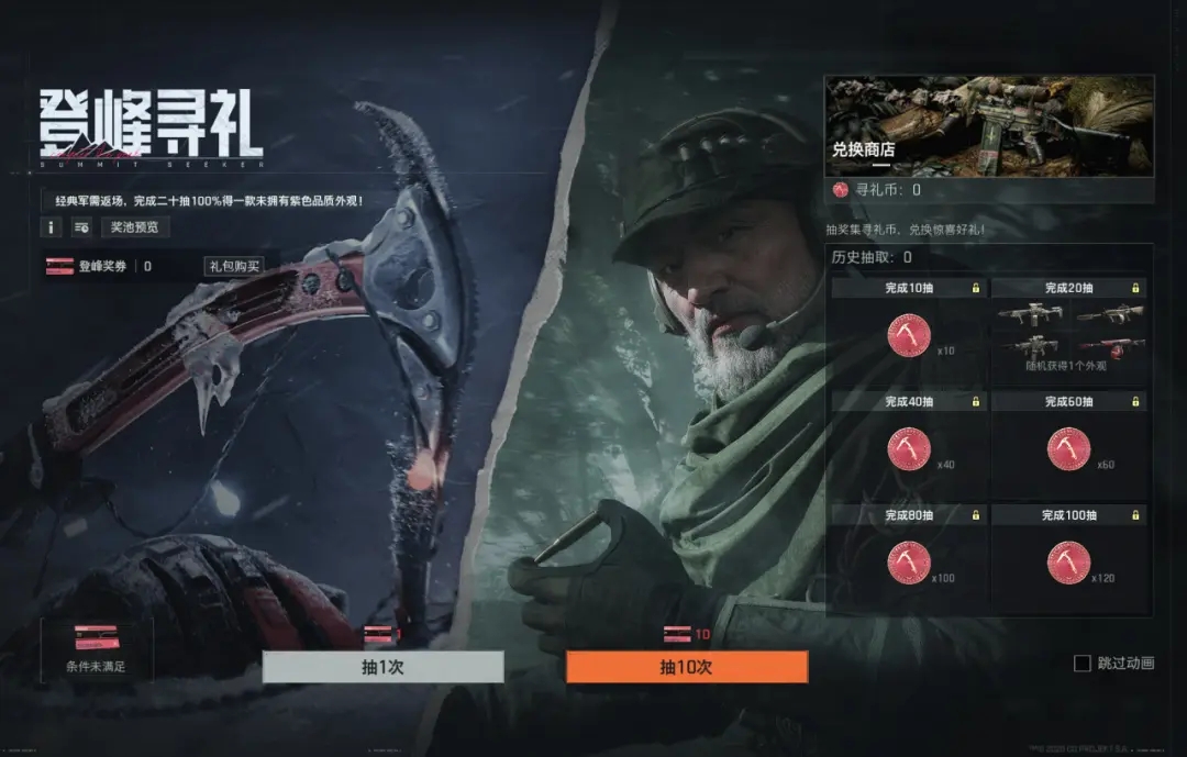 之前推测的都不太对,既不是宣发错误也不是像手游一样上新军需盲盒,而是把两款军需合并之后送10连抽,奖池里面可以抽积分自己自由兑换,这对于上次抽了部分或者两款军需只抽了一款的玩家非常利好。