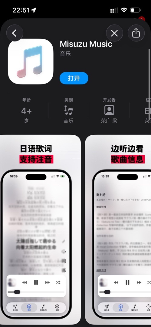 一个跨平台的本地音乐播放器,支持自动匹配歌词和海报,支持创建歌单,支持日语汉字注音假名。界面仿Apple Music。