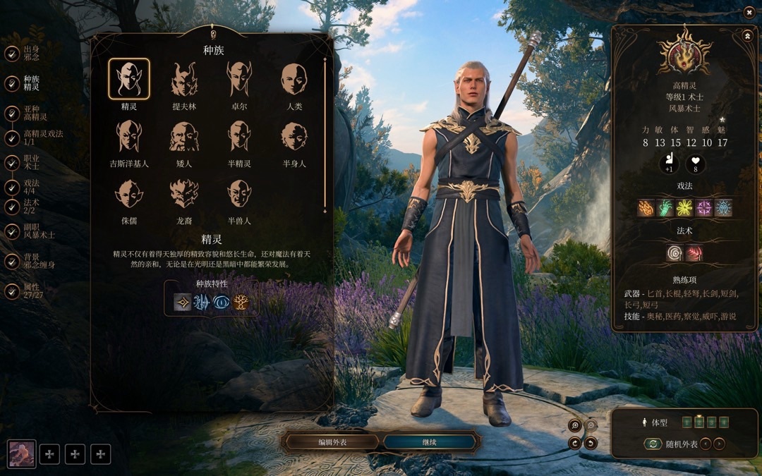 注:选择种族时,可以适当考虑与职业的契合度,如法师选精灵(智力),游荡者选人类/精灵(敏捷),不过还是看自己怎么喜欢怎么来