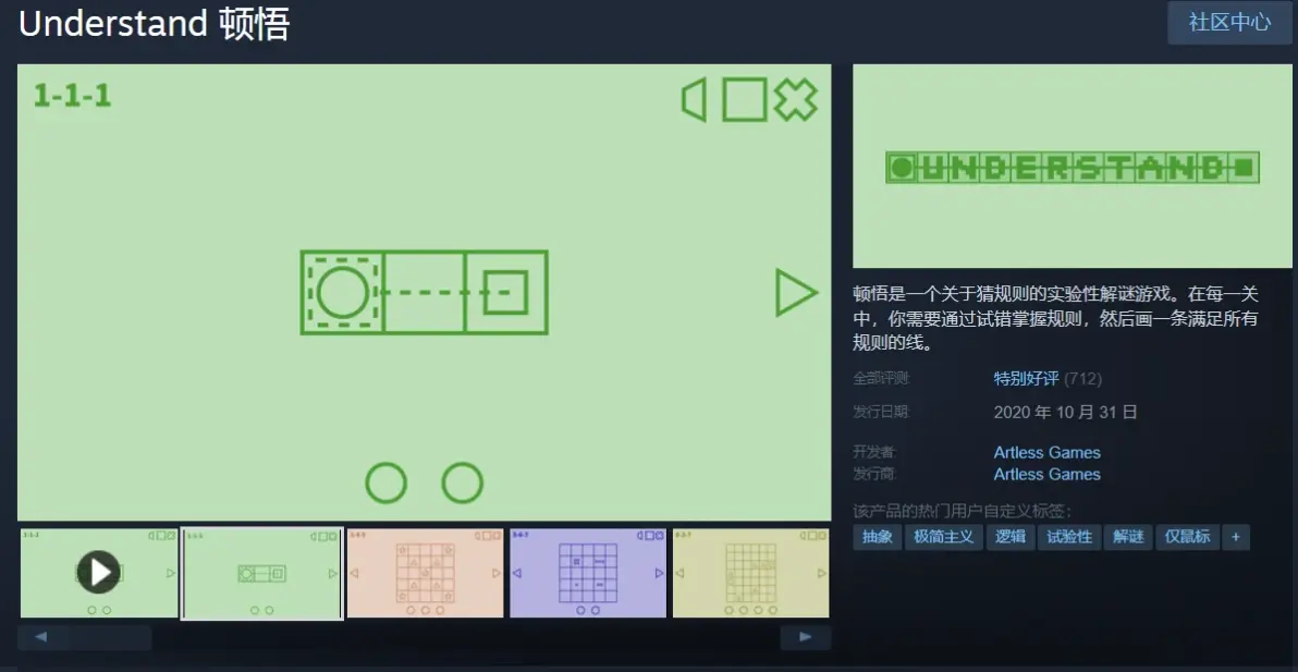 Artless: 那時候我收入還行,時間也比較充裕,所以有閒工夫在網上爭論。Understand 的靈感還有個來源,是上世紀的一個桌面遊戲 Zendo。我沒玩過,但知道它的規則,意識到這種核心玩法是可行的,就去做了一個。