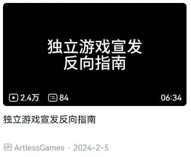Artless Games 在b站的頻道也做了一兩期視頻關於他對宣發的看法