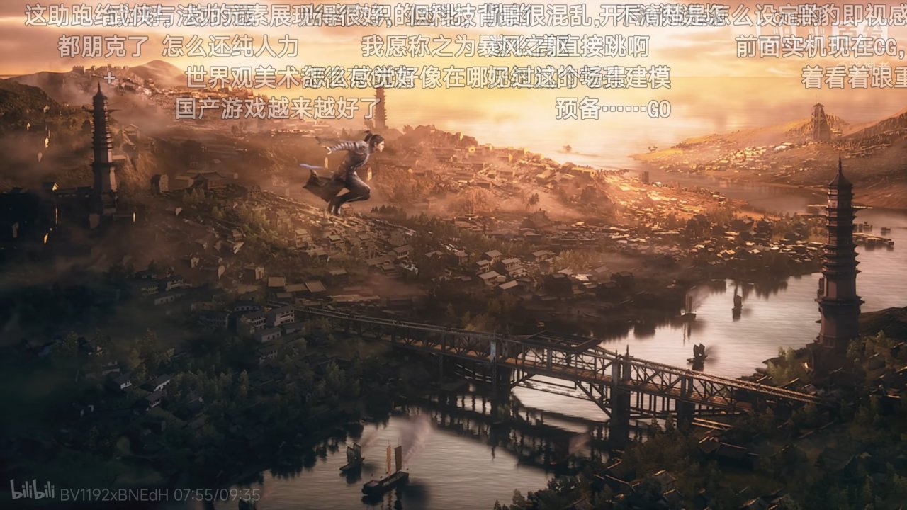 从预告片的视觉效果来看,《逆神者》在美术风格上做出了大胆的尝试。游戏开场就展示了一片古色古香的徽派建筑,青砖白墙的风景是国人非常熟悉的画面。但仔细观察,你会发现这个世界并不简单——纤夫喊着号子,拉着的却是空中飞艇;城市里四处都是青瓦白砖的房屋,翘起的屋檐间却布满了一条条蒸汽管道;汽车、火车奔驰在跨海的大桥、城市的街道上。