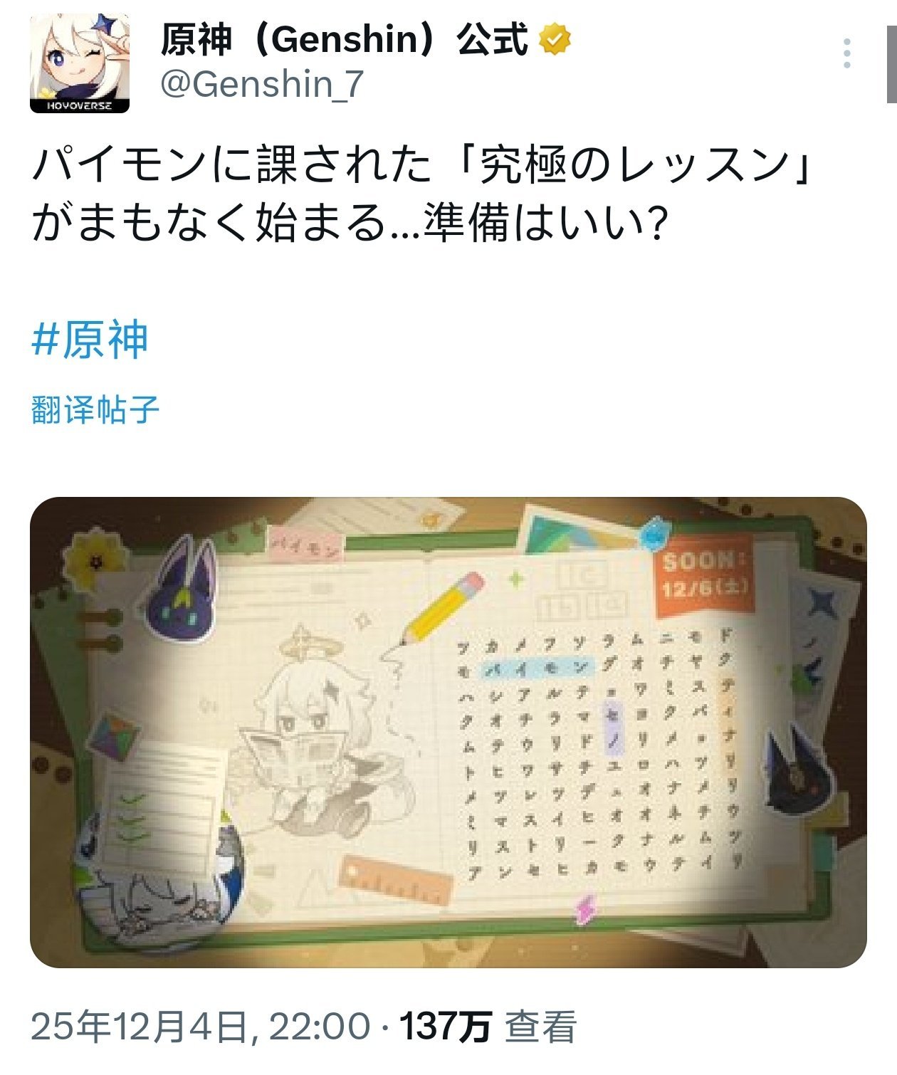 2025年12月4日22:00,原神官方海外社区账号突然发布一张极具冲击力的预告图,正式宣布与多邻国(Duolingo)的第二次联动即将在12月6日全球同步开启!