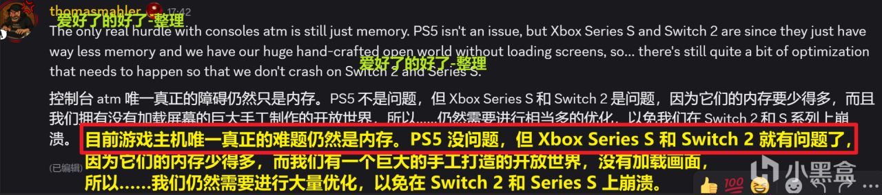 對於遊戲在主機平臺上的發佈,目前官方已經在進行測試了,可以看到在PS5上可順利運行,但在Xbox和ST2上會遇到內存不足導致的崩潰的問題,仍需要官方進一步優化。