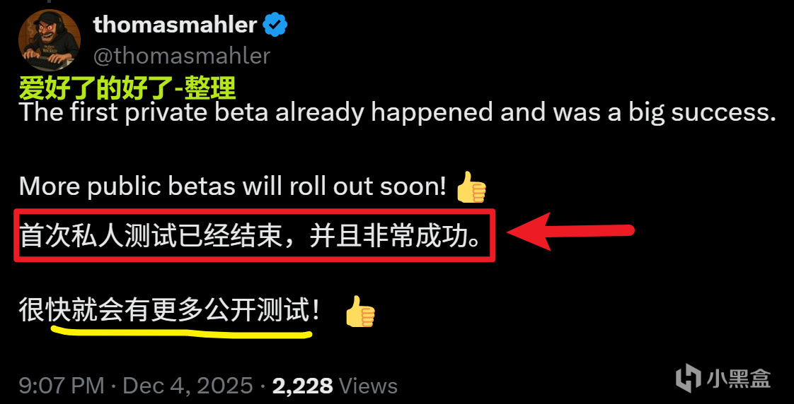 首先是多人聯機第一次PTR測試已順利結束,本次測試參與玩家數量較少,測試時間從11.29至12.04日,托馬斯很滿意測試效果,並表示下一次公開測試即將開始。有一點需要注意,托馬斯所說的soon一般不是2-3天的等待,考慮需要修復測試中出現的各種bug,可按預留約1周時間的等待期。爲了保證多人聯機高質量的發佈,避免差評轟炸,官方亦不急於推出多人聯機,畢竟多人聯機官方預定的更新時間是2026年年初(惡意不息的IP屬於月亮社,沒有發行商壓力),所以在遊戲修復和完善上有很充裕的時間。