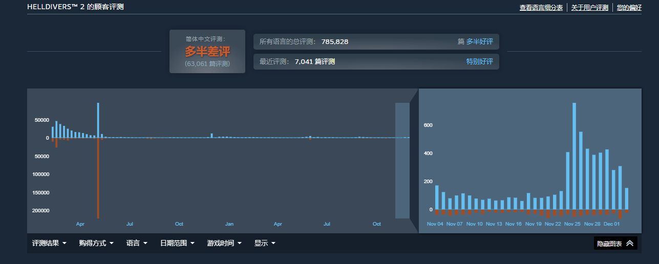 这一优化显著降低了玩家的存储门槛,成为游戏重返全球数字游戏销售榜前五名的关键推动力。此次“瘦身”得益于开发商Arrowhead与索尼旗下优化团队Nixxes的合作,通过完全去重化处理游戏数据,在几乎不影响加载速度和画面质量的前提下实现了体积的极致压缩。结合“黑色星期五”促销,游戏在线人数迅速攀升,Steam评价也回升至“特别好评”。