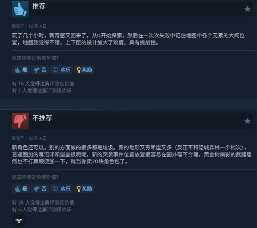 该DLC目前已成为FS社在Steam平台评分最低的作品,甚至比《黑暗之魂3》DLC《艾雷德尔之烬》的58%好评率低了近10个百分点。玩家批评的焦点主要集中在内容量与售价不匹配。这款DLC售价达本体游戏的近一半,但仅新增两名可玩角色“学者”与“送葬者”、一张新地图以及两个头目。许多玩家指出新增武器严重不足,且部分武器只是基础武器的换皮模型,缺乏新武器、战灰或法术。新增地图被批“形式大于内容”,其复杂机关设计与时间限制让玩家探索动力大减。此外,BOSS难度过大及多人、单人模式平衡性问题也备受诟病。