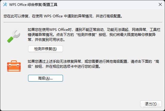 打开这个界面后直接点高级。(明明是设置,外面描述还伪装成修复异常,太恶心了)