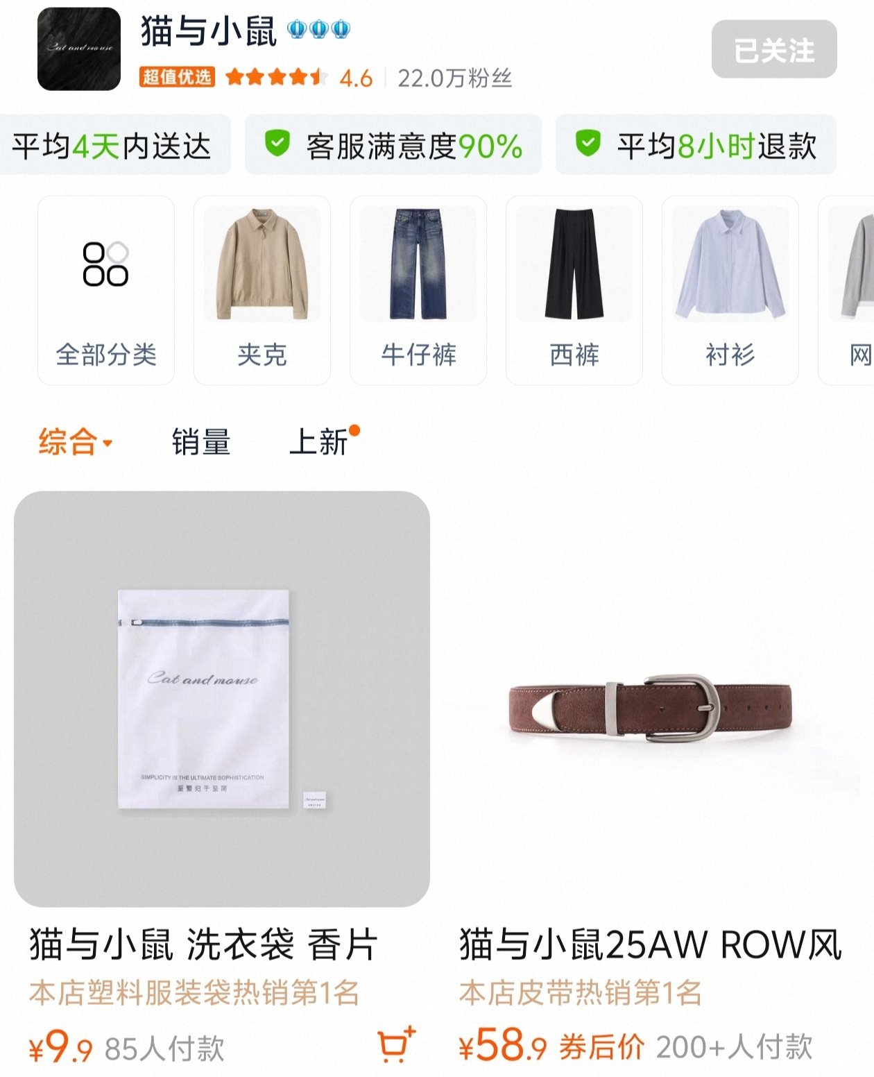 猫鼠算是后起之秀,质量很好价格较低,买衣服送洗衣袋,而且也是顺丰包邮,质价比很高。今年国庆买了他们家一个条纹衬衫,质感很顶。