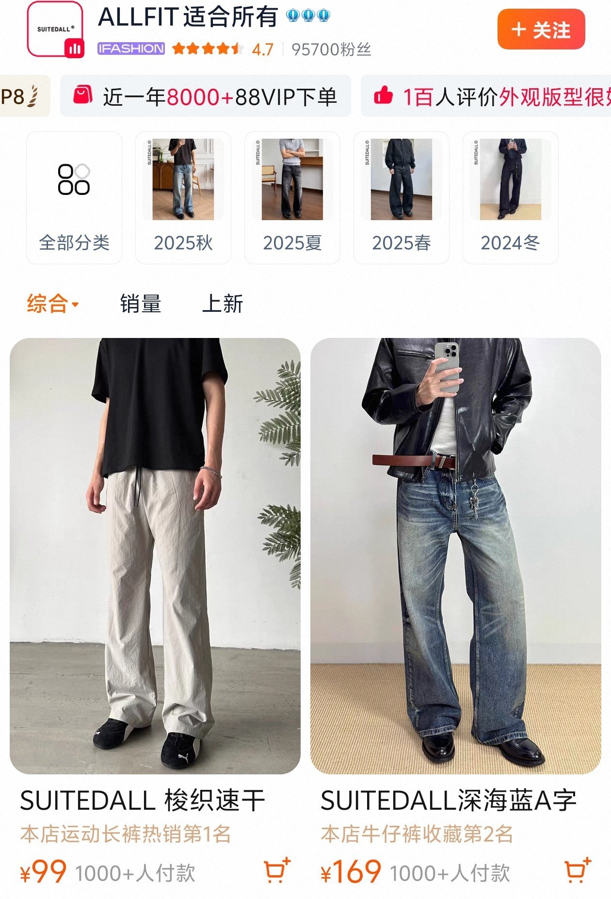 最近要买裤子的可以看看allfit,均价1开。他家主要是做牛仔裤的,款式很多,黑牛蓝牛白牛法工应有尽有,做工在同价位非常能打,线头很少,内里包边、垫片是标配