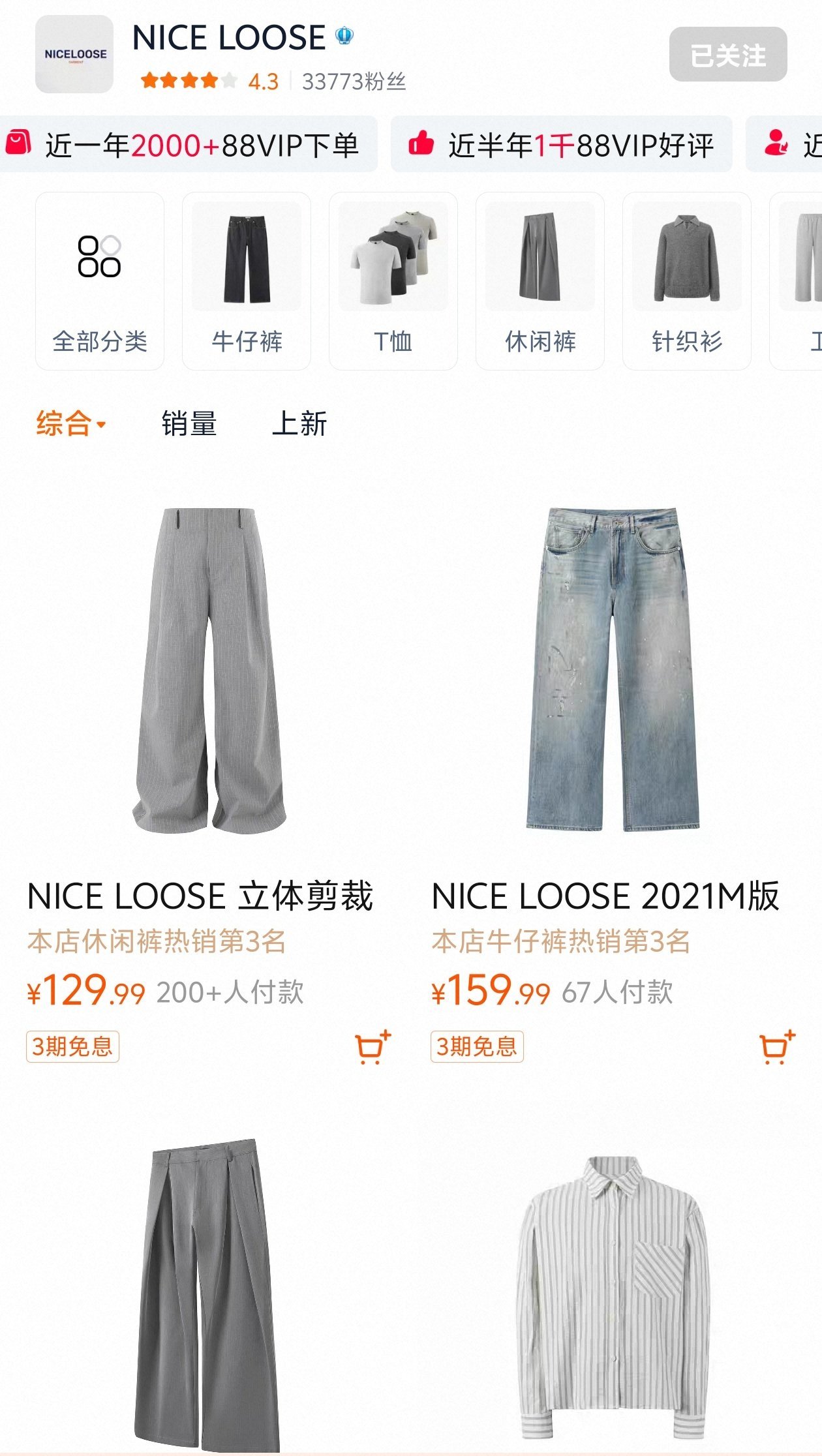 NICE LOOSE的商品主要是打板较有热度的国潮单品,大多数不超过2开,他家推广较少所以知名度相对较低。