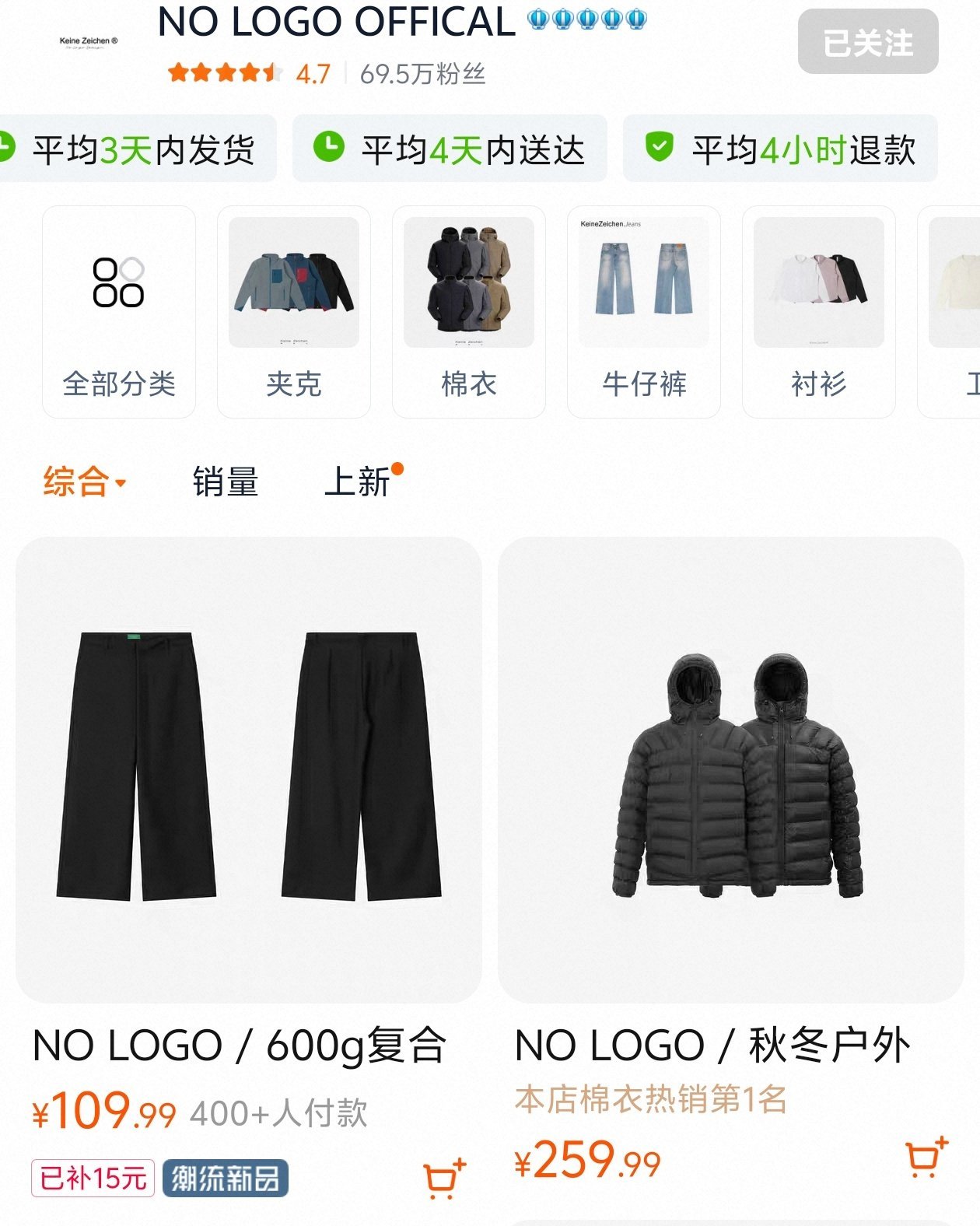 相信大家如果关注过当今国潮服装圈一定听说过NO LOGO的大名,这家店铺以其低价,高质在众多国潮商品均价2开3开的情况下让消费者看到,一开甚至不到一开的价位也可以穿到好衣服。这个冬天nologo也开始逐渐转型,不再拘泥于卷低价,而是更加注重质量,最近新出的羽绒服大家有这方面购买需求可以留意一下。