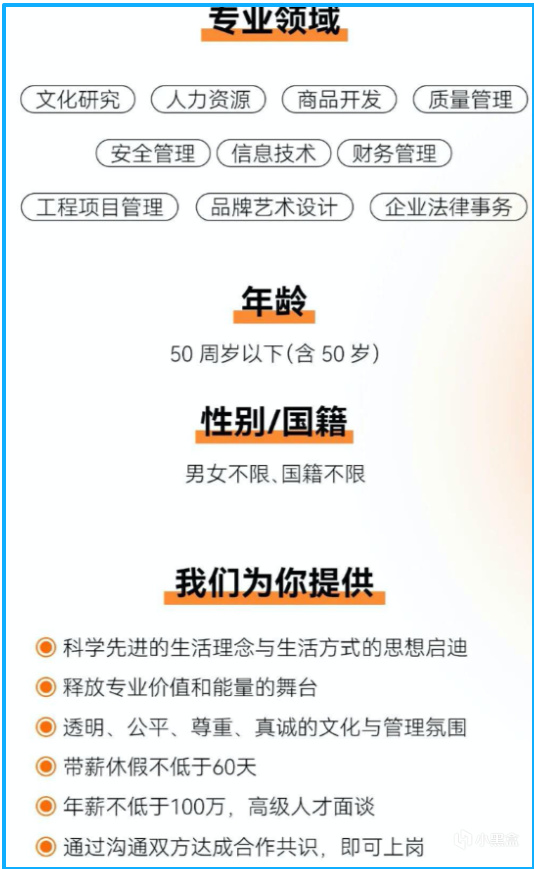 此次招聘不设性别与国籍限制,仅要求应聘者年龄在 50 周岁及以下。招聘范围覆盖十大核心领域,包括文化研究、人力资源、商品开发、质量管理、安全管理、工程项目管理、信息技术、品牌艺术设计、财务管理以及企业法律事务。