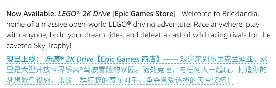 [Epic 平台]《乐高 2K 竞速》LEGO 2K Drive