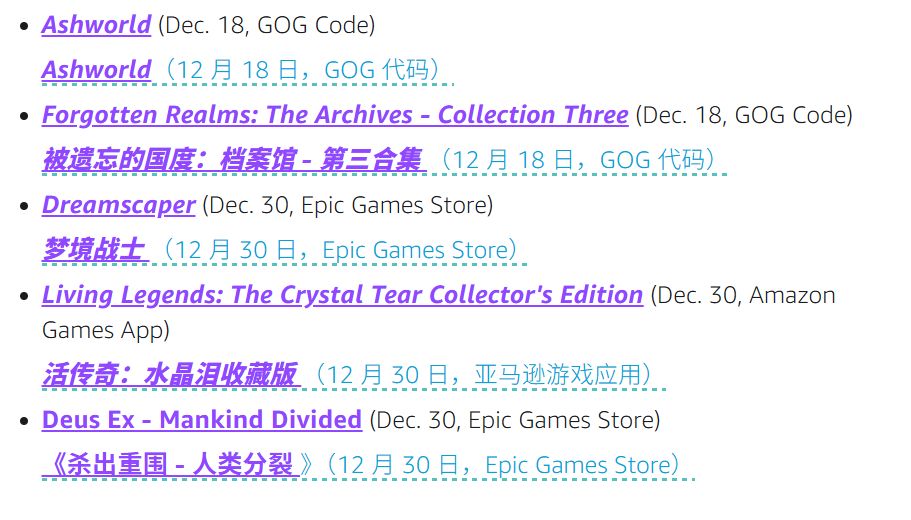 各位爱打游戏的彦祖和亦菲们,大家早上好,中午好,晚上好,我是爱分享的大学生,亚马逊十二月可领游戏如下,一起来看看吧
