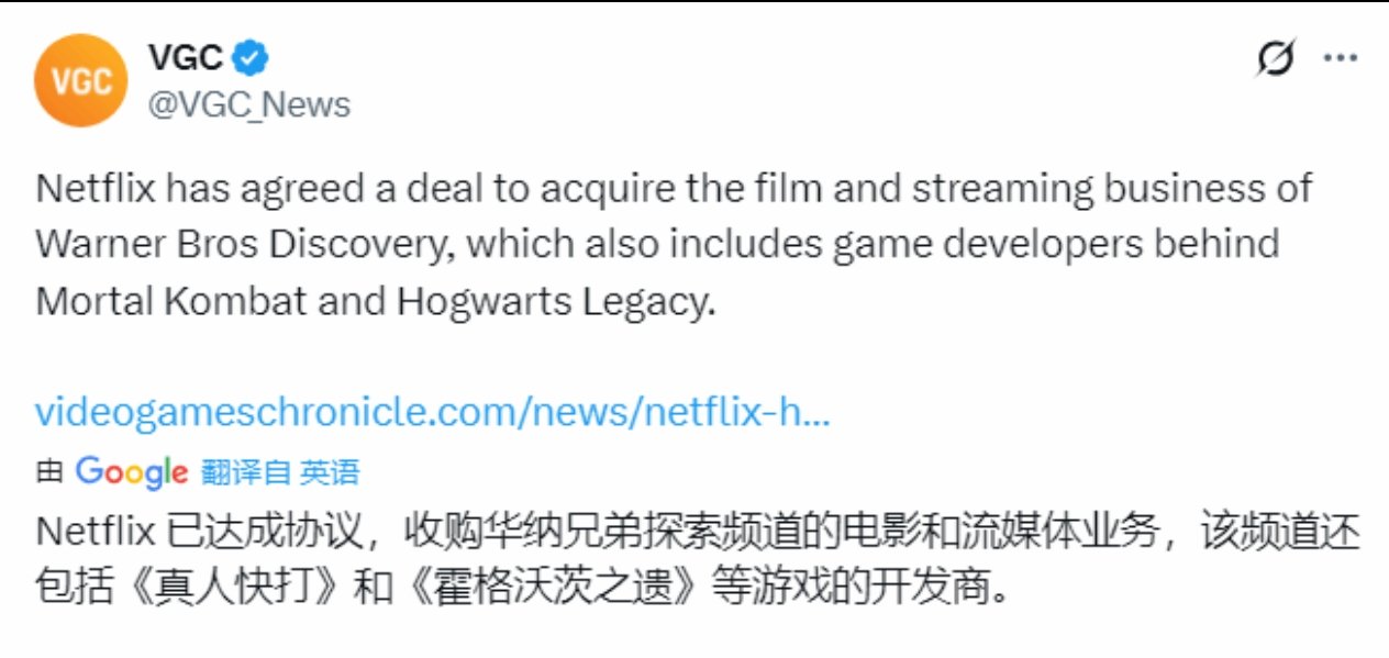 此次收购包括其电视与电影部门、流媒体平台HBO和HBO Max。此项交易还包括《霍格沃茨之遗》和《真人快打》等游戏背后的游戏开发团队(华纳蒙特利尔工作室、Rocksteady Studios、NetherRealm Studios、Avalanche Software、TT Games等)。此外此次收购将使Netflix获得华纳兄弟庞大的内容库,包括《哈利·波特》、《老友记》等经典IP以及HBO Max流媒体平台。合并后实体用户基数预计将达到约4.5亿,但这一规模也引发了反垄断担忧。交易预计于2026年第三季度完成,但需面临监管审查。为应对可能出现的审批障碍,Netflix已承诺50亿美元的分手费条款。